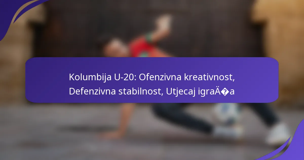 Kolumbijska U-20 reprezentacija pokazuje izvanrednu kombinaciju ofenzivne kreativnosti i defenzivne stabilnosti, što im omogućuje učinkovito natjecanje na međunarodnoj sceni. Njihove dinamične napadačke strategije, podržane istaknutim igračima, generiraju brojne prilike za postizanje golova, dok održavaju čvrstu defenzivnu strukturu koja minimizira prijetnje protivnika. Ovaj kohezivni pristup ne samo da poboljšava njihovu izvedbu u utakmicama, već također potiče razvoj pojedinih igrača.