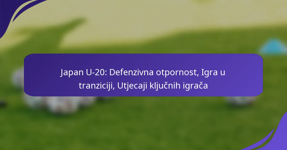 Japanska U-20 reprezentacija pokazuje impresivnu obrambenu otpornost i učinkovitu tranzicijsku igru, što ih čini izazovnim protivnikom. Njihove strukturirane formacije omogućuju im da apsorbiraju pritisak dok se brzo prebacuju na kontre, iskorištavajući praznine u obrani protivnika. Ključni igrači u timu značajno utječu na njihovu izvedbu, poboljšavajući kako individualnu tako i kolektivnu dinamiku svojim vještinama i strateškim doprinosima.