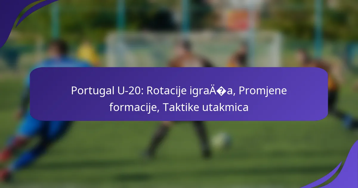 Portugal U-20 reprezentacija strateški koristi rotacije igrača kako bi održala visoke razine performansi tijekom utakmica, uzimajući u obzir čimbenike poput kondicije i obrazaca zamjena. Osim toga, promjene formacije igraju ključnu ulogu u poboljšanju dinamike igrača i taktičke fleksibilnosti, omogućujući timu da učinkovito iskoristi slabosti protivnika. Njihove raznolike strategije utakmica naglašavaju prilagodljivost i maksimizaciju snaga ključnih igrača, doprinoseći njihovom uspjehu na natjecateljskim turnirima.