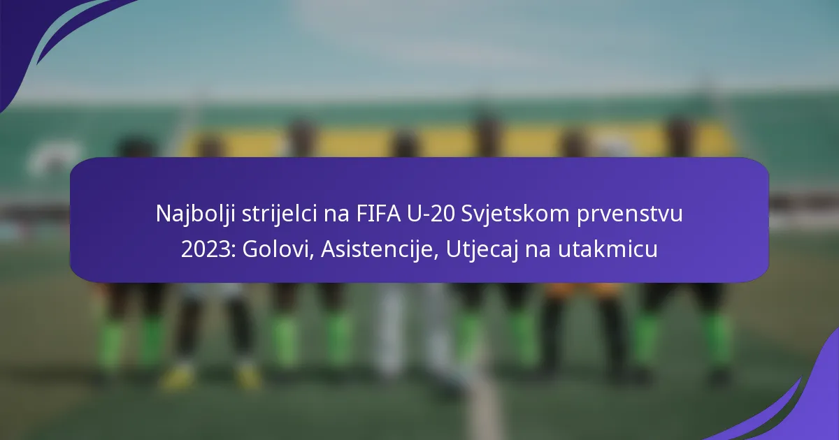 Najbolji strijelci na FIFA U-20 Svjetskom prvenstvu 2023. značajno su utjecali na svoje utakmice kroz ključne golove, asistencije i ukupne performanse. Njihovi doprinosi ne samo da su podigli moral tima, već su također oblikovali taktičke strategije, vodeći do odlučujućih pobjeda.