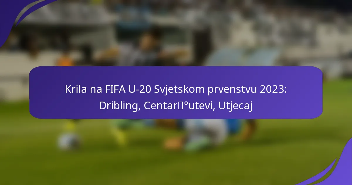 Krilni igrači na FIFA U-20 Svjetskom prvenstvu 2023. definirani su svojom brzinom, sposobnošću driblinga i preciznošću centriranja. Ovi igrači igraju ključnu ulogu u rastezanju obrana i stvaranju prilika za postizanje golova kroz svoju dinamičnu igru na bokovima.